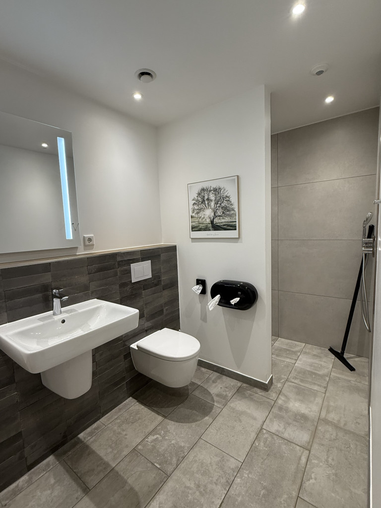 Als wir dann die Sanitäreinrichtungen erkundeten, war schnell klar, warum hier so viele Gäste begeistert sind: Die besten Bäder unserer bisherigen Tour – wirklich! Wir haben unterwegs schon alles erlebt: moderne Anlagen, funktionale, mittelmäßige und auch sehr in die Jahre gekommene. Aber diese hier sind ein echtes Highlight – top gepflegt, modern, durchdacht und absolut sauber.