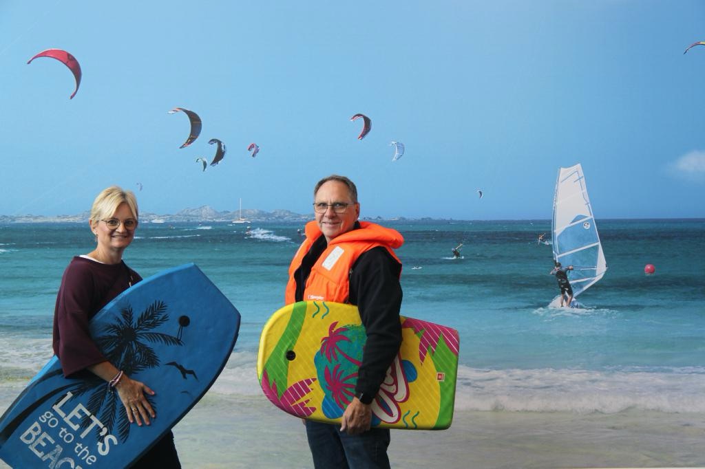 Ein besonderes Erlebnis war unsere kleine Weltreise durch die Fotospots: In jedem Ausstellungsbereich sind Kulissen aufgebaut – mal Wüste, mal Berge, mal Küstenlandschaften – und überall kann man sich in Szene setzen. So haben wir in kurzer Zeit Fotos gemacht, als wären wir rund um den Globus unterwegs gewesen.