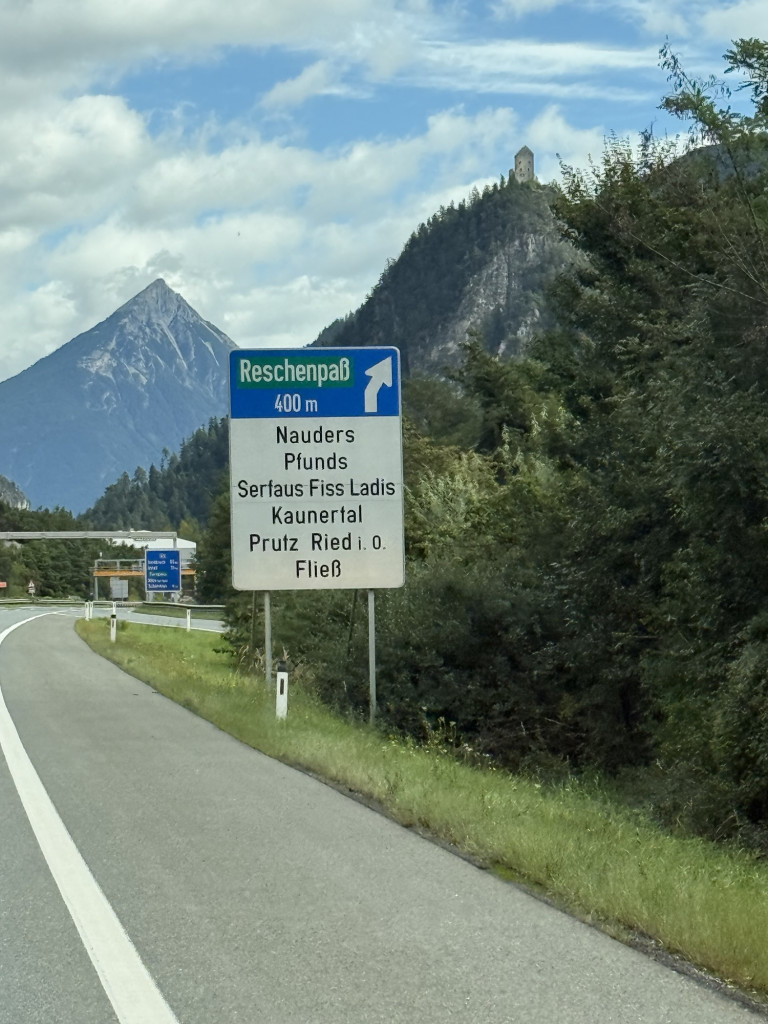 Hinter Landeck verlassen wir die Autobahn und biegen Richtung Reschenpass ab. Vor einigen Monaten gab es hier einen Geröllabgang; die Straße wird noch immer saniert und ist nur einspurig mit Ampelregelung befahrbar. Doch wir haben Glück und kommen ohne größere Verzögerung durch.