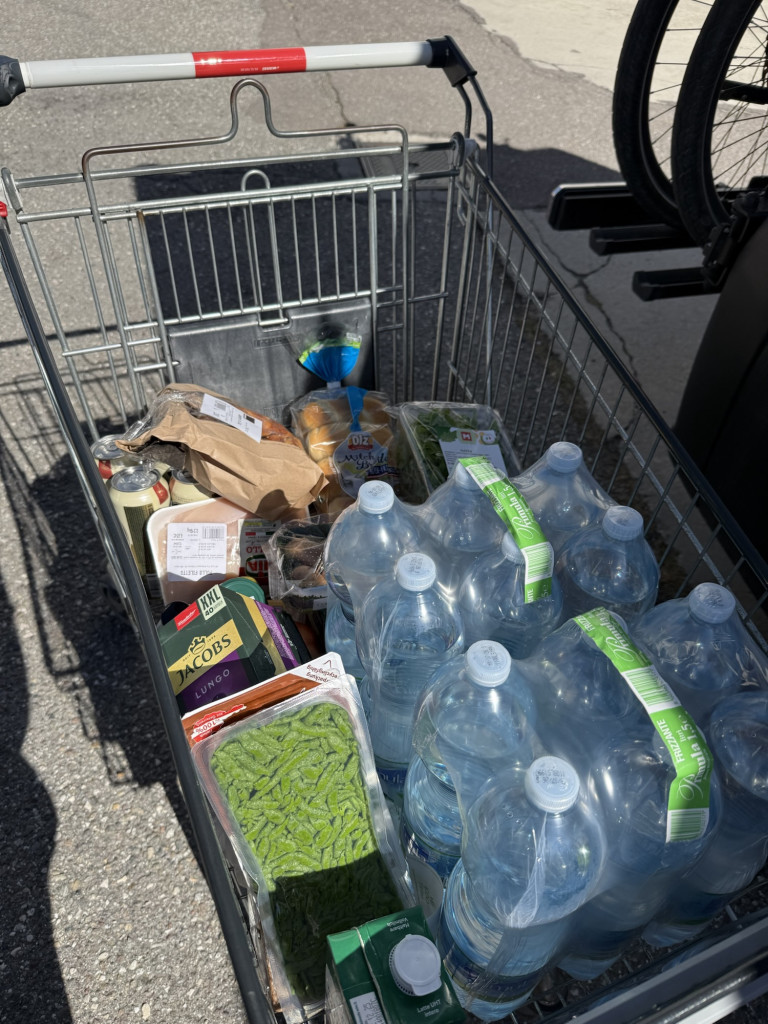 In Lana haben wir noch schnell einen Einkaufsstopp eingelegt. Drei Tage Vorräte im Gepäck – sicher ist sicher. Auf 1.340 m Höhe oben auf dem Berg will man schließlich nicht verhungern, nur weil der nächste Laden meilenweit weg ist 😉.
